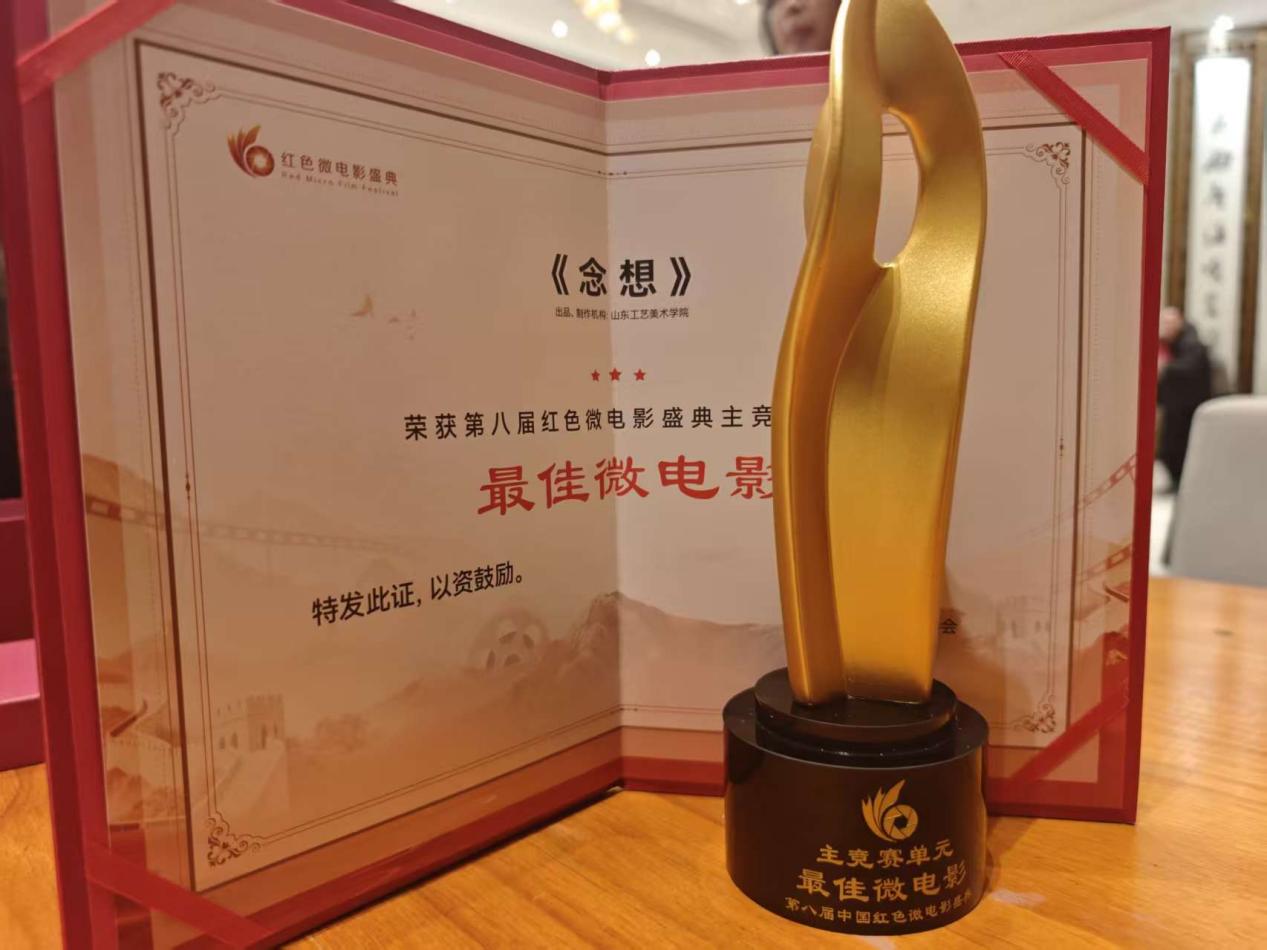 12月25日晚,第八届红色微电影盛典推优晚会在六安市金寨县中国红色微电影剧院成功举办。由山东工艺美术学院出品的动画影片《念想》入围终评并荣获主竞赛单元最高奖“最佳微电影奖”。