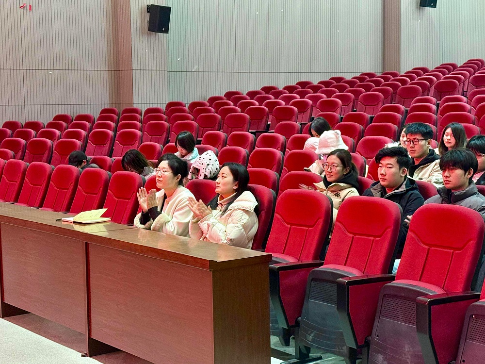 为总结年度工作成效,精准锚定发展方向,凝聚学生干部合力、激发奋进力量,1月12日,产教融合青岛基地学生会学期工作报告大会在学术报告厅召开。李雪梅、徐玉琳、刘倩如老师出席会议,学生会全体成员参加本次大会。