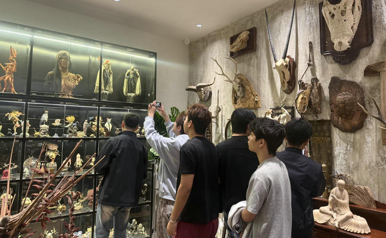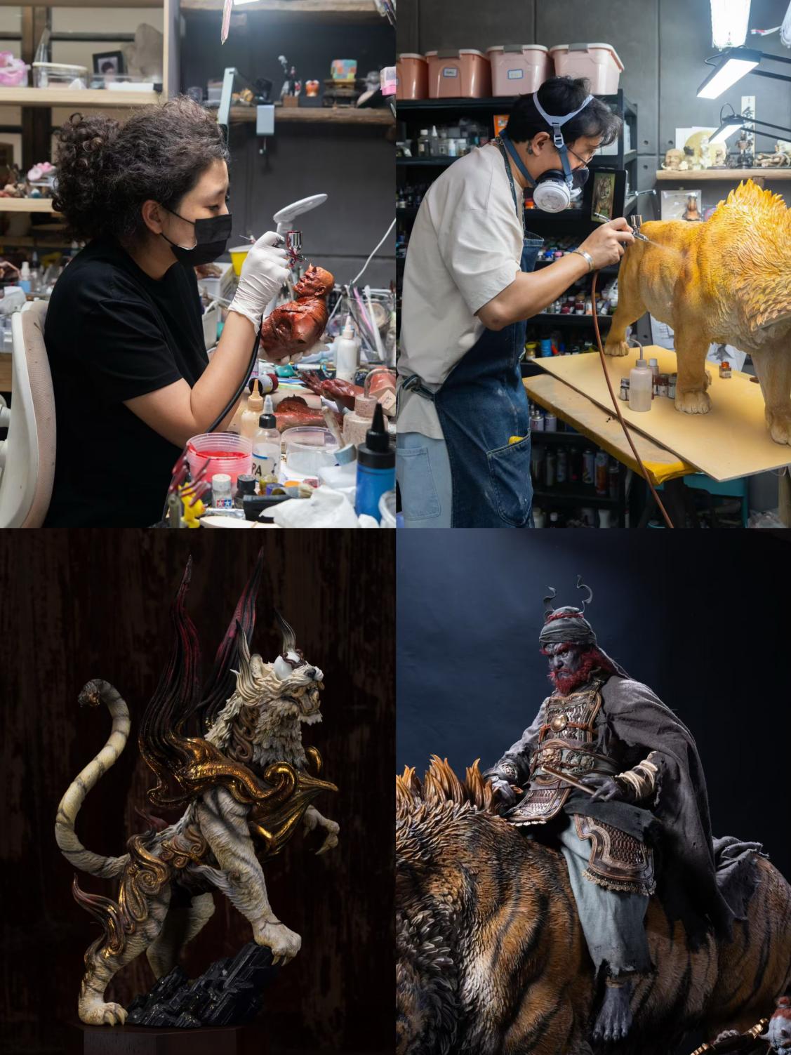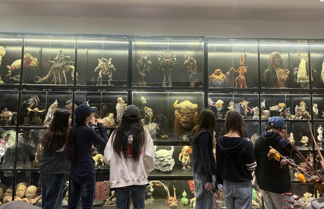特效化妆师现场展示乳胶、毛发纤维、专业喷枪等工具运用,以“画皮”技艺打造逼真角色造型,让同学们直观感受影视特效化妆的艺术魅力与技术水准。在IP衍生品开发区域,特效设计师们为同学们展示了依托影视IP与原创设计,深耕高端GK模型、手办、文创产品等衍生品开发,将影视经典角色与场景转化为实体文创作品,打通影视创作与文创设计的壁垒,让同学们看到妆扮设计、造型设计在文创领域的延伸应用,与本专业学生就业方向高度契合,拓宽了专业就业与创作的范围。