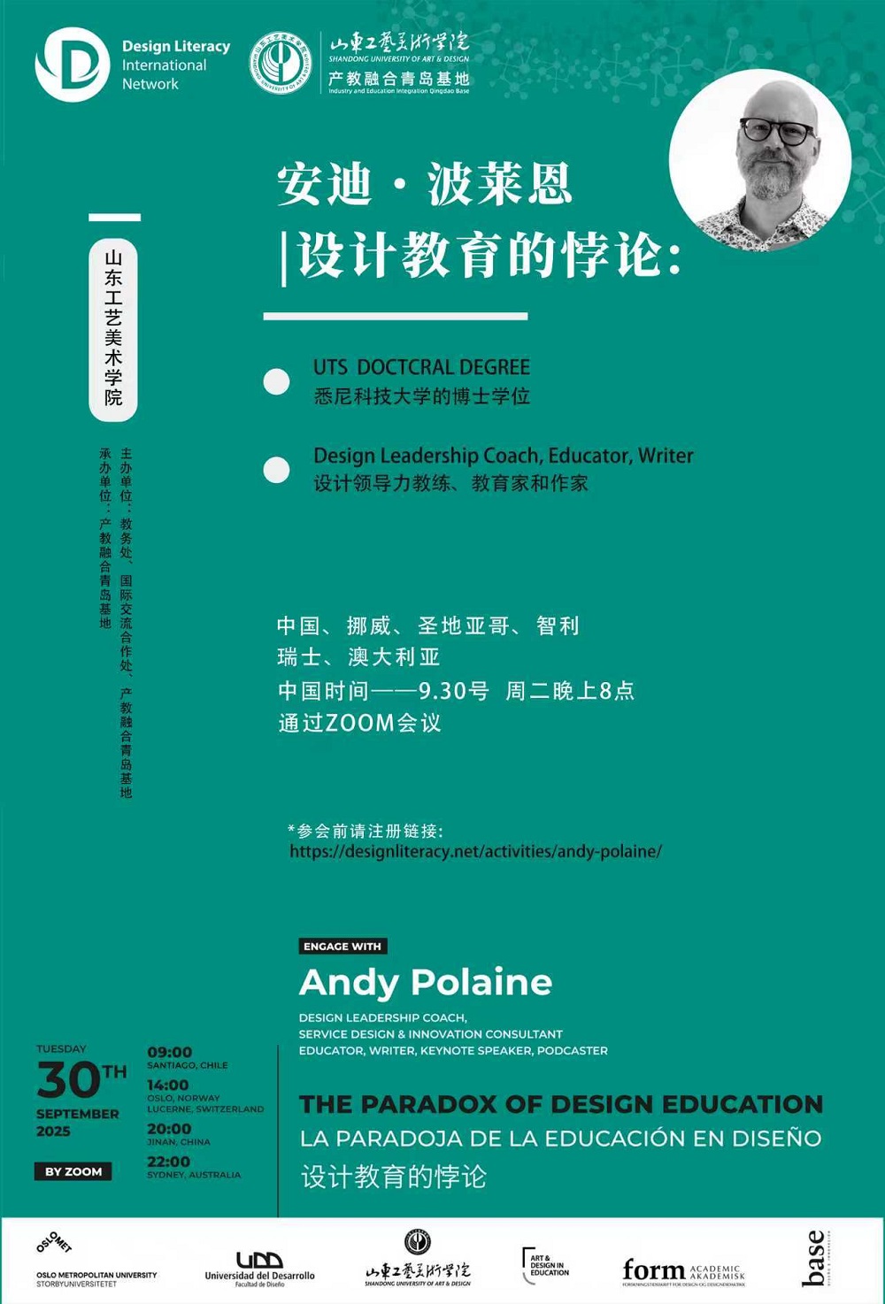 讲座注册链接(注册后请留意邮箱,会前会议号会发至邮箱):https://designliteracy.net/activities/andy-polaine/
