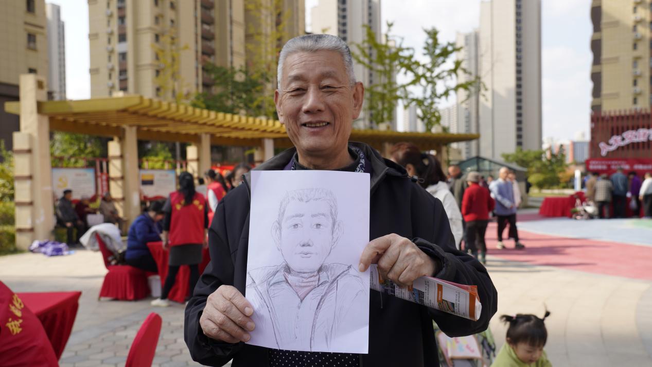 肖像创作完成后,老人们接过画作仔细端详,脸上露出欣慰笑容,随后手持肖像画定格合影;孩子们拿到画后兴奋地向身旁的家人展示,用镜头留住重阳佳节的温情时刻,充分体现了活动的暖心初心。