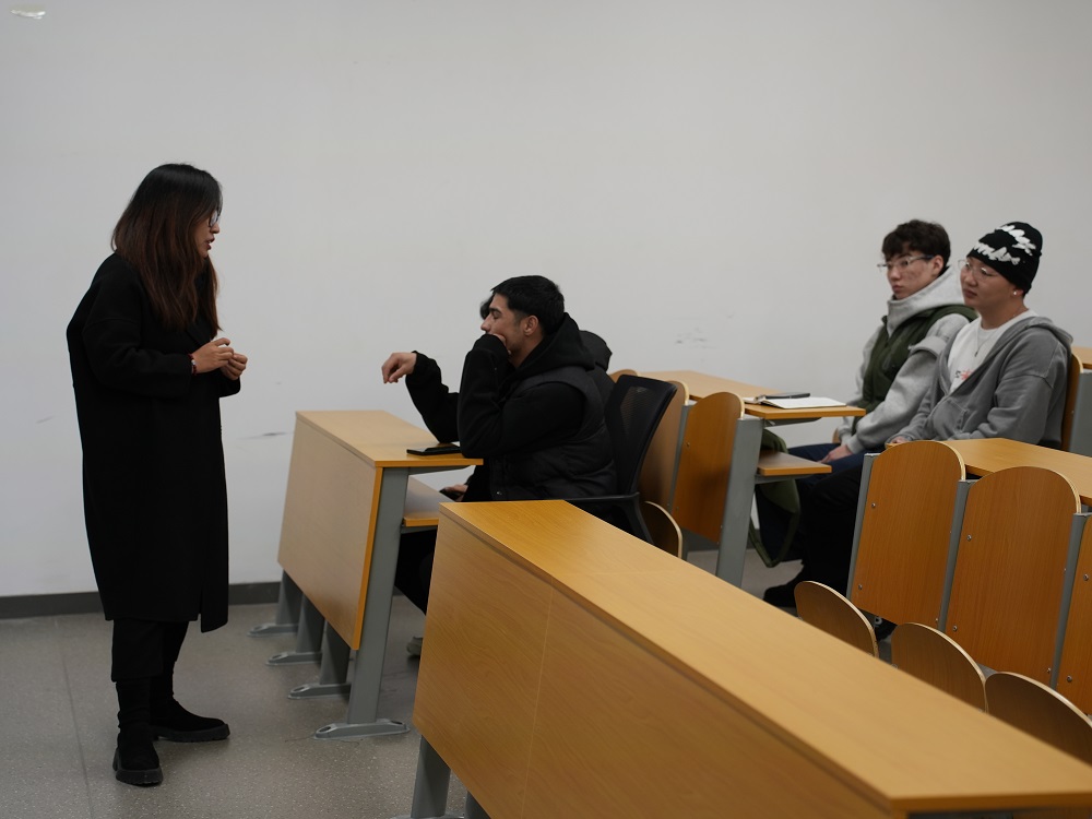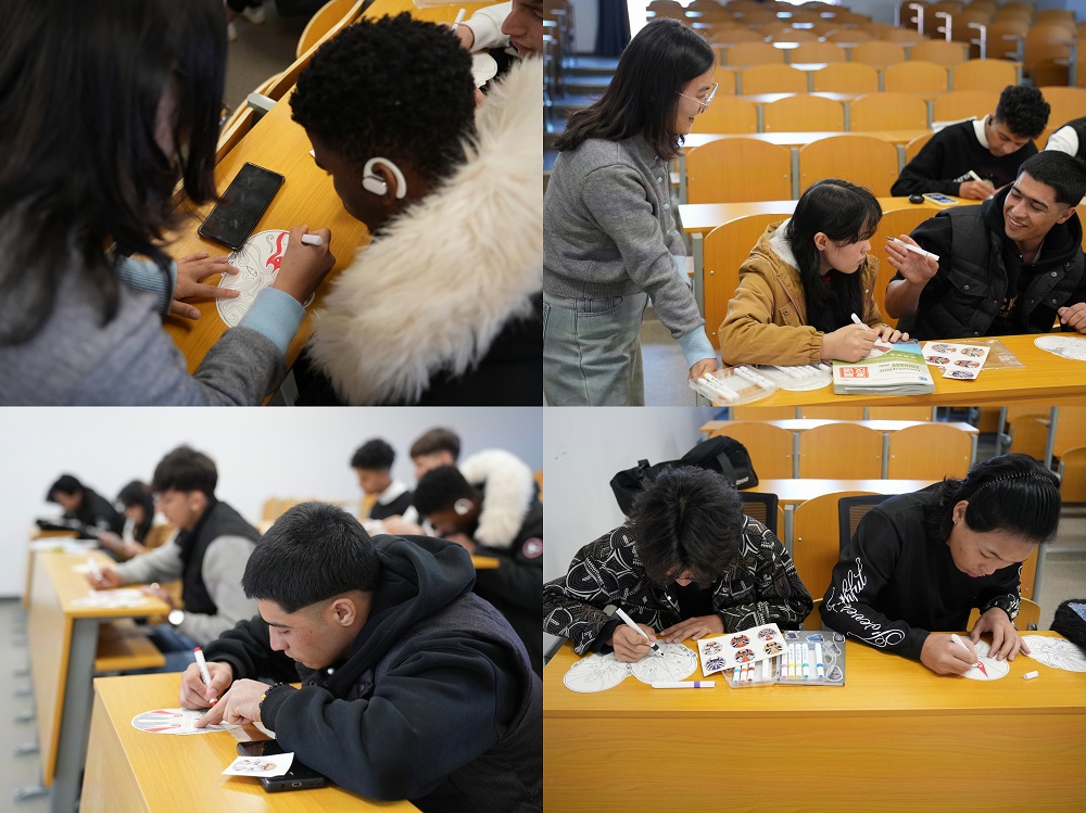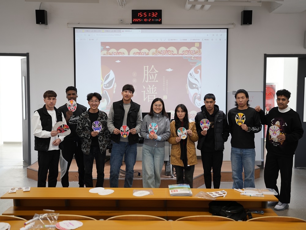 10月21日,武倩老师带领留学生们共同深入中国传统的梨园世界,感受中国戏曲之美。武老师向留学生们系统讲解了京剧的起源、行当与脸谱的色彩符号学知识,并借助多媒体向学生们展现了京剧的唱念做打等特征,共同欣赏东方戏剧之美。实践环节中,武老师向留学生们分发了空白脸谱,同学们根据课堂上学到的脸谱色彩符号知识对脸谱进行装饰上色,尽情发挥想象力,创作出一件件独一无二的脸谱作品,通过实践也让留学生们更加直观地感受到了中国传统国粹艺术的魅力。