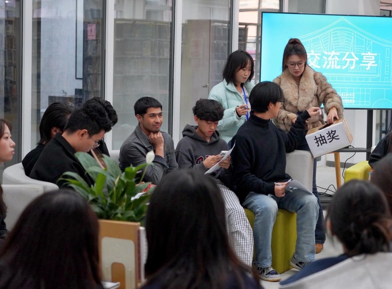 击鼓传花问答环节瞬间点燃氛围。鼓声起落间,手持花束的同学从容应答、分享独到见解,既检验了阅读成果,又激发了参与热情。随后的自由分享环节温情满满,同学们踊跃畅谈心爱书籍,结合自身经历分享感悟,分享者获赠小礼品,仪式感十足,思想火花在交流中碰撞交融。