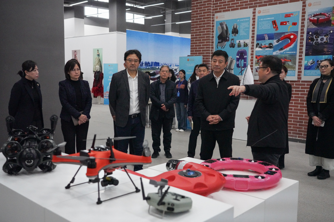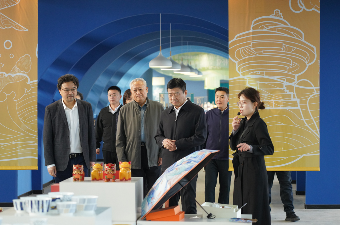调研期间,李明一行到“山东手造”(青岛)国际展示体验中心、文化艺术中心进行了实地考察,先后参观了寄情大湾区——潘鲁生艺术作品巡回展和青岛基地2025届学生毕业展优秀作品,详细了解了学校在产教融合高质量发展以及推动产教协同育人、科研成果转化、服务地方经济文化发展方面的主要成果。
