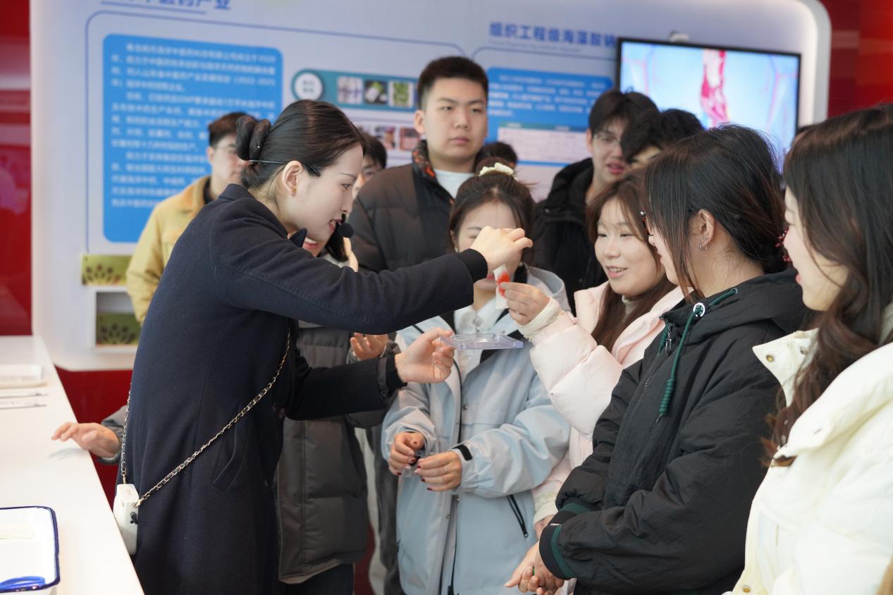 走进青岛明月海藻生物健康科技集团,师生们开启“一株海藻的科技赋能之旅”,沉浸式感受“小海藻”的多元产业价值。从基础海藻酸盐到医用敷料、功能食品等多元产品,前沿技术赋予传统海洋资源全新活力,清晰展现生物材料科技产业链的丰富应用场景,让大家对海洋新材料、生物基材料的研发创新与产业转化形成更透彻的认知。