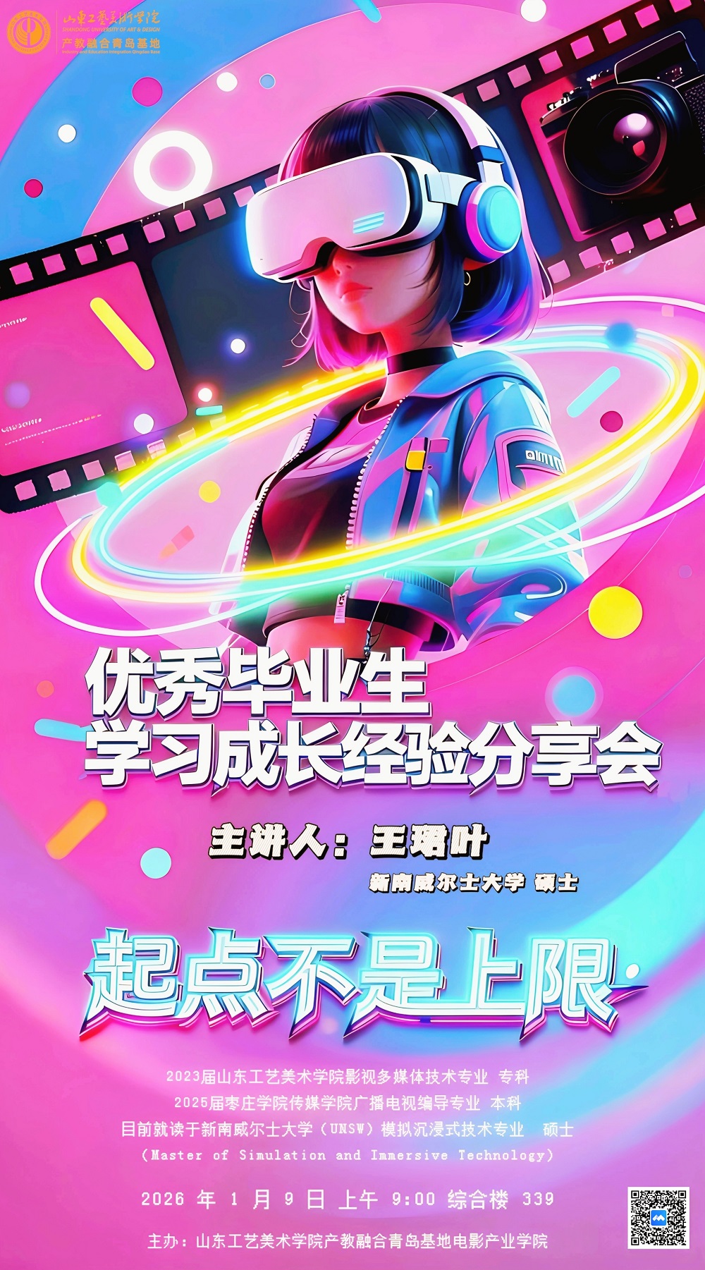 为激励在校学子学习热情,近日,电影产业学院邀请2023届优秀毕业生王珺叶以线上分享会的形式,为2024级同学们带来了一场聚焦学业进阶、专业实践与国际视野拓展的深度分享。从山东工艺美术学院影视多媒体技术专业专科启程,到如今跻身世界名校攻读硕士学位,王珺叶用自己的成长轨迹为学弟学妹们提供了有价值的参考。