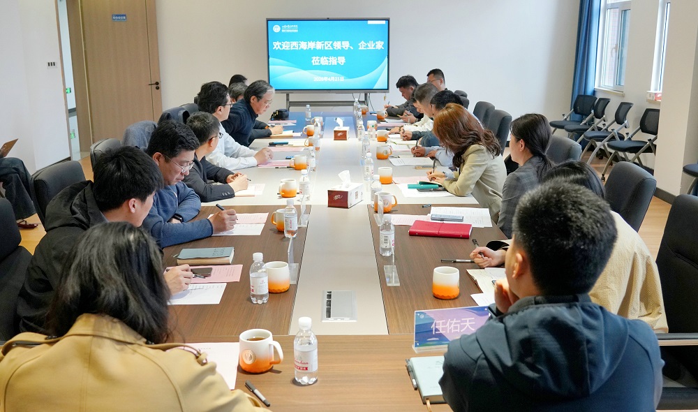 4月21日,青岛西海岸新区招商中心党组成员、副主任原新明,新质生产力促进中心副主任陈雪带领企业代表一行10人到访产教融合青岛基地,双方围绕产教融合发展、校企平台搭建、项目落地对接开展座谈。学校党委委员、宣传部部长、青岛基地党委直属党支部书记孙磊接待来宾并出席座谈对接会。